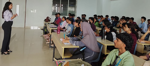 Ms Nandini Mehta, proud alumni of our college currently working with Federal Bank as Assistant Manager handling Credit and Forex Operations handled the session and briefed about the steps involved in the interview process and the required preparations for the same. In the course of the session speaker highlighted the importance of Aptitude Test and also shared certain tips with students on the process involved at Placements.