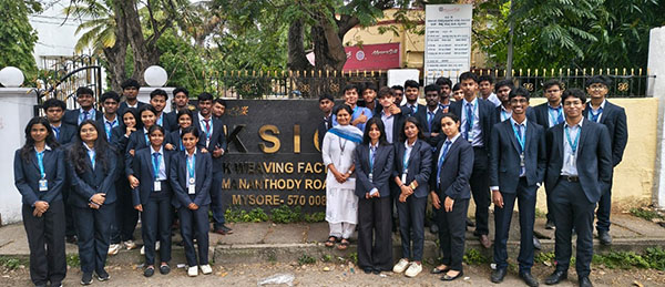The Department of Professional Management Studies, School of Business and Management, organized an industrial visit to the Karnataka Silk Industries Corporation Limited (KSIC) factory in Mysore on October 15, 2025. The visit, supervised by Dr Ashy Sebastian, aimed to provide students with practical exposure to the entire value chain of a premium, heritage retail brand, from manufacturing efficiency to sophisticated market positioning.During the visit, students observed the integrated process of silk production, which is crucial for understanding the Mysore Silk product’s premium retail value. Students learned that KSIC is the sole proprietor of the 'Mysore Silk' brand, which has earned a Geographical Indication (GI) tag. This exclusive branding is protected at the retail level by authenticating each saree with a hologram and a unique code number. This demonstrates a clear strategy for combating counterfeiting and assuring customers of the product's premium quality, which includes 100% pure silk and gold Saree.