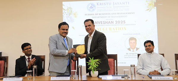 The School of Business and Management, Department of Management, Kristu Jayanti University, organized ANVESHAN 2025 – Intra-University Student Paper Presentation Competition on the theme “The Business Renaissance through Technology, Transformation, and Talent.”