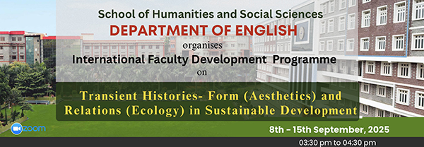 The Department of English, Kristu Jayanti Deemed to be University, organized an International Faculty Development Programme from 8th to 15th September 2025 on the theme “Transient Histories – Form (Aesthetics) and Relations (Ecology) in Sustainable Development.” The sessions featured eminent scholars addressing ecological and cultural dimensions of sustainability. Prof. Mohan J. Dutta (Massey University, New Zealand) explored communication, culture, and planetary justice in the context of sustainable transitions, while Prof. Janet Stephenson (University of Otago, New Zealand) shared insights on sustainability practices and cultural responses. Dr. Avishek Parui (IIT Madras) examined memory, narrative, and environmental imaginaries, and Prof. Murali Sivaramakrishnan (Pondicherry University) discussed art, literature, and ecocritical perspectives. Dr. Rayson K. Alex (BITS Pilani, Goa) highlighted Indigenous ecological knowledge and eco-narratives, followed by Dr. Swarnalatha R (IIT Madras), who reflected on digital ecologies and contemporary climate discourses. The programme concluded with Dr. Anchitha Krishna (NIT Calicut) focusing on environmental humanities and pedagogical approaches. Each session offered fresh perspectives that blended aesthetics and ecology, fostering rich interdisciplinary dialogue. The FDP provided faculty and researchers with valuable insights, collaborative opportunities, and renewed academic energy to address sustainability challenges.