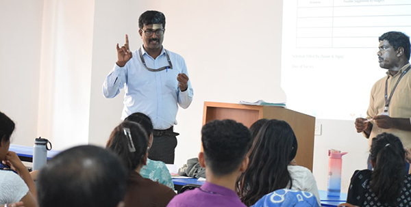 The Department of Media Studies, Kristu Jayanti (Deemed to be University), under the School of Humanities and Social Sciences, successfully organised an orientation program on Household and Village Survey focusing on rural exposure for second-year MA Journalism and Mass Communication students was held on October 14, 2025, from 3:40 to 4:30 PM. The session was led by Mr. Manjunath S, UBA, Department of Management and Dr. Kirana Kumar H G, UBA, Department of Kannada. Who serve as a Coordinator and member of the university’s Unnat Bharat Abhiyan (UBA) initiative.