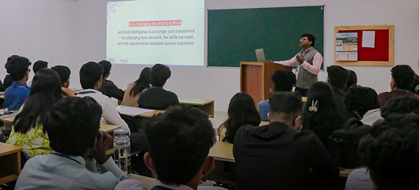 The workshop aimed to introduce students to the emerging world of AI and its increasing influence on human life, education, and research. The technical sessions were conducted in three interactive modules by Dr. Goswami. The first module encouraged lively discussions through thought-provoking questions and a SWOT analysis of AI, exploring its strengths, weaknesses, opportunities, and challenges, as well as its relevance in media and communication. The second module explained key AI concepts, including AI, Machine Learning, and Deep Learning, with clear and accessible explanations. The final session showcased practical applications, demonstrating tools like ChatGPT, Gemini, NotebookLM, and Perplexity to enhance research, writing, and learning. The workshop not only deepened students’ understanding but also inspired them to adopt AI-driven innovation in academics, research, and professional life. The event also included participation from other faculty members of the department.