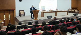 The session began with a welcome address and the introduction of the resource persons, Mr. Srivatsa Raja (Strategic Alliance Manager, IDP Education, India) and Mr. Abhishek M. Swamy (Assistant Territory Manager, IDP IELTS, Karnataka). A sapling was presented as a token of gratitude, symbolizing knowledge and growth. The speakers provided a detailed overview of IDP and IELTS, highlighting its worldwide acceptance, scholarship opportunities, and relevance for Indian students aspiring to study or work abroad. They explained the four modules—Listening, Reading, Writing, and Speaking—along with the scoring system and the differences between computer-based and paper-based formats. A live speaking test activity offered students practical exposure. The session concluded with an interactive Q & A, addressing doubts about preparation, scoring, and career pathways. Overall, the programme was impactful, combining expert guidance and interactive learning to help students confidently pursue global opportunities.