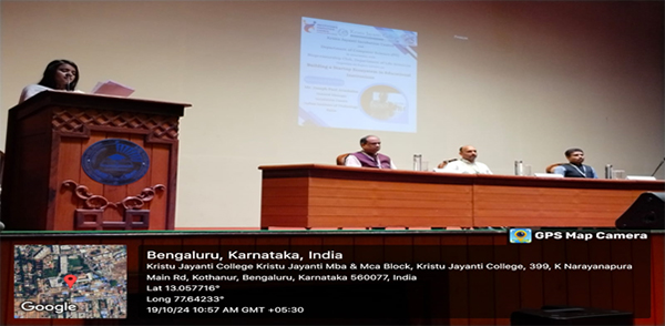 The expert lecture titled "Building a Startup Ecosystem in Educational Institutions" was organized by Kristu Jayanti Incubation Centre and the Department of Computer Science (PG), in collaboration with the Biopreneurship Club of the Department of Life Sciences. The session was led by Mr. Joseph Paul Arackalan, General Manager of the Incubation Centre at the prestigious Indian Institute of Technology (IIT), Patna. The program aimed to educate students on the practical steps involved in launching startups, from ideation to execution, as well as the various support structures that can facilitate this journey. Mr. Arackalan highlighted the role of Institution’s Innovation Councils (IICs) and Incubation Centres as crucial pillars in helping students transition their innovative ideas into market-ready products. He also discussed how incubation centres within colleges can offer students access to funding, mentorship, and training in entrepreneurship.