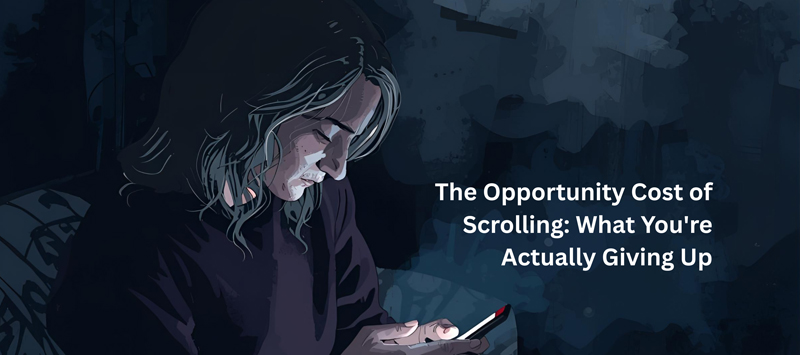 Of all the currencies in our lives, time is the most valuable and non-refundable. Each day, we have the same twenty-four hours. How we decide to spend them shapes the direction of our lives. Yet, many of us unknowingly make a bad investment by spending too much time just scrolling. This habit comes with a significant opportunity cost; it silently takes away our potential, paid for with moments we can never get back. When we give in to the digital scroll, we are not just wasting time; we are losing it. We trade the chance for deep, focused work for scattered attention. We give up real-world connections for staged online performances, and we replace the fertile ground of boredom, where creativity and self-reflection thrive, with an endless stream of packaged content. The book stays unread, the skill remains unlearned, and the meaningful conversation doesn't happen, all pushed aside by the lure of the infinite feed. The real cost goes beyond missed activities; it weakens our ability to engage with them. Our brains, wired for constant newness, become impatient with the slow, rewarding journey of mastering a complex task or simply being present in a quiet moment. Realising this is the first step to reclaiming our most valuable resource. It urges us to be intentional—before we unlock our screens, we should ask what precious alternative we are about to lose. By choosing purpose over passivity, we invest our limited time not in watching the lives of others but in actively building our own.