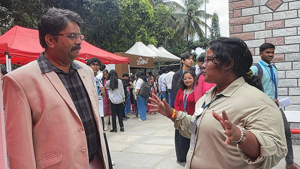The live Campus Farmers Market, organised under Kristu Jayanti Sarva Vikas through One District One Product (ODOP), which aims to support local economies by promoting unique, district-specific products and encouraging sustainable development. This initiative was taken as a part of `Silver Jubilee` celebrations, Kristu Jayanti (Deemed to be University) initiated to indorse 25 profile-raising originations at the campus which rosters the local economies by showcasing innovative ideas. ‘Kristu Jayanti Sarva Vikas’ is first initiative` organised on Tuesday, 24th September 2024 as part of Viksit Bharat@2047, Government of India’s One District One Product (ODOP) Scheme under the Make in India initiative. Thrive Global” during Sarva Vikas to promote local produce and support sustainable agriculture. The goal was to raise awareness about the benefits of consuming locally-grown produce, reduce the carbon footprint through farm-to-table practices, and support local farmers by removing middlemen.