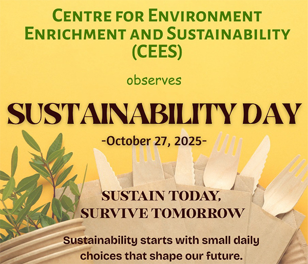 The Centre for Environment Enrichment and Sustainability (CEES), Kristu Jayanti (Deemed to be University), observed Sustainability Day on October 27, 2025, to promote the importance of adopting eco-friendly practices and mindful consumption in daily life.