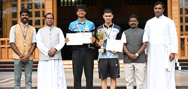 The Men’s Table Tennis Team of Kristu Jayanti (Deemed to be University) exhibited remarkable skill, teamwork, and perseverance at INFINI 2025 – the National Level Sports Fest organized by PES University, and E-SPIRIT 2025 – the Intercollegiate Sports Fest hosted by Azim Premji University, Bengaluru, held from October 13 to 19, 2025. The 2-member team showcased consistent excellence across both tournaments, finishing as Runners-up at INFINI 2025 and emerging as Champions at E-SPIRIT 2025, reflecting their dedication, discipline, and exemplary sportsmanship. In recognition of this commendable achievement, the University Management, led by Rev. Fr. Dr. Augustine George, Vice Chancellor, and Rev. Fr. Dr. Lijo P. Thomas, Pro-Vice Chancellor, extended their warm congratulations and appreciation to the team. The felicitation ceremony was attended by Prof. Arockiaraj, Director of Physical Education, and Lt. Manivannan S., Physical Education Instructors, who praised the players for their exceptional performance and commitment to upholding the university’s sporting excellence.