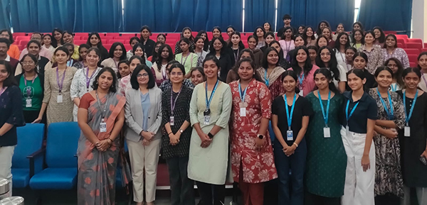 Mr. Dominik of Motherhood Hospital, spoke on the facilities of the hospital and gave a brief introduction of Dr. Nagaveni. The Emcee, Ms Pranjal- Student Coordinator of Women’s Empowerment Cell started gave a brief introduction of the resource person.