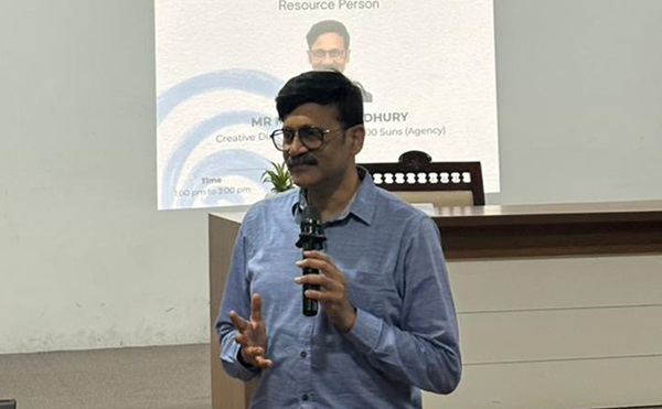 The session was led by Mr.Manoj Choudhury, Creative Director, Founder of 1000 Suns, Bengaluru. The session began with students sharing what they believed “Pen to Power” might signify, which opened the floor for deeper reflection. The speaker then guided the audience through the true essence of the phrase, illustrating the power of words through an impactful story. He emphasized how well-chosen words can influence thought, create opportunities, and build meaningful professional connections.