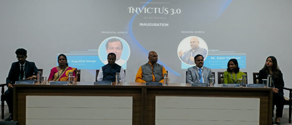The Department of Professional Management Studies successfully hosted Invictus 3.0, its flagship inter-collegiate management fest, on 4 November 2025 at the A2 Auditorium. The event was inaugurated by Mr. Sajan Varghese, Ex-President and Advisory Board Member, Talent Acquisition, Café Coffee Day, at 9:15 a.m.