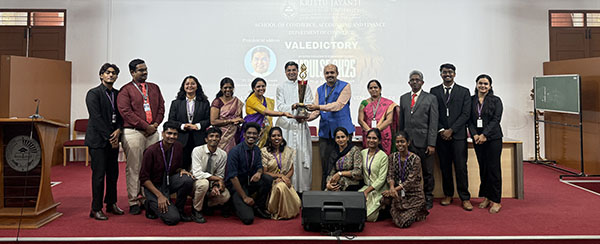 The Department of Commerce organized the Knowledge Exchange Program ‘Samyog’ - KJU Visit - Newman College, Thodupuzha. On 28th of August 2025, A Total of 32 M.Com. and B.Com. students along with 2 faculty members from Newman College, Thodupuzha visited the university. The program commenced with two sessions: Activity Oriented Session on Enhancing Skills for Career Development handled by Dr. Madhu Druva Kumar, Head, Department of Commerce, and Activity Oriented Session on Career Planning handled by Prof. Sen B Mathews, Director, CECR. Dr. Madhu Druva Kumar engaged the visiting students by asking them about their career goals, guiding and mentoring them on how to shape those aspirations, and conducting fun-filled activities to make the session more interactive. Prof. Sen B Mathews enriched the students with insights on skill development and career planning, encouraging them to introduce themselves akin to a job interview and providing valuable guidance for professional growth. Both sessions were highly engaging and offered practical takeaways for the participants. Following the sessions, the visiting students and faculty were taken to the Silver Jubilee Auditorium, where a video presentation showcased the achievements and initiatives of Kristu Jayanti University were played. The tour continued with visits to the chapel, the media lab, and the digitalized humanities library, the PG block, quadrangle, computer lab, electric lab, biotech and life sciences laboratories, gaining insights into the advanced infrastructure. The visit concluded with an exploration of the medicinal garden, which houses more than 243 species of medicinal plants, highlighting the institution’s commitment to holistic learning and research.