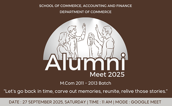 The Department of Commerce organized the virtual Alumni Meet of 2011-13 Batch on 27th September 2025, Saturday from 11:00 am to 12:00 pm for the alumni of M.Com 2011-13 batch. It started with a moment of silent prayer. Dr. Vijayakumar R, Dean, School of Commerce, Accountinf and Finance as well as Dr. Madhu Druva Kumar, HoD, Department of Commerce recalled the memorable teaching moments that they had as teachers had with the batch. Thay even appreciated the class cohesion even after graduating from the college. The alumni members updated their present status. They fondly remembered the management and faculty members who led them through thick and thin. The event was organized by Dr. Cherian Thomas Coordinator – Dept. of Commerce (PG courses) along with the other faculty members of the department and student volunteers.