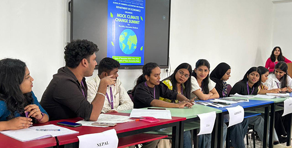 The Department of Economics, Kristu Jayanti (Deemed to be University), organised a Mock Climate Summit on 6th November 2025 for the students of IM.Sc. Economics and II B.A. Applied Economics. About 41 students participated in the event. The session provided students with a practical understanding of how discussions, debates, and negotiations take place in real-world climate summits. Students represented various countries and proposed the need for technological advancements and collective action to mitigate climate change risks. The event offered valuable insights into the current climate-related challenges faced by different nations, the strategies adopted to address them, and the growing importance of international cooperation in tackling global climate issues. As a part of the teaching pedagogy for the course ‘Economics of Sustainable Development Goals,’ the program successfully provided students with hands-on experience of how climate summits operate in practice.