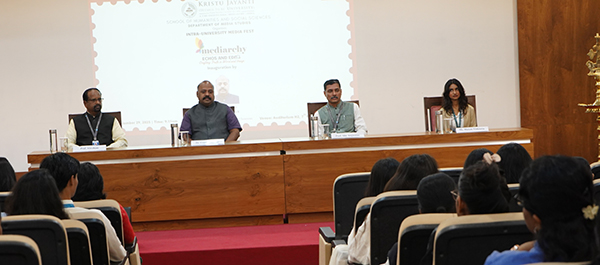 The Department of Media Studies, Kristu Jayanti University, inaugurated its much-awaited Intra-University Media Fest Mediarchy 2025 on September 29, 2025, with the theme “Echos and Edits: Crafting Truth in Word and Image.” The fest was inaugurated by Dr. Gopakumar A.V., Dean, School of Humanities and Social Sciences, who in his address emphasized the power of media in shaping narratives and underscored the importance of truth and ethics in journalism, urging students to balance creativity with responsibility.