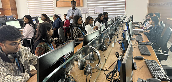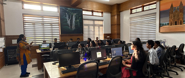 The Department of Media Studies, in collaboration with the Department of English, conducted a hands-on English Language Skill Studio Orientation for the first-semester B.Sc. Visual Communication students on September 24, 2025. The session took place in the Language Lab, Ground Floor, Humanities Block.