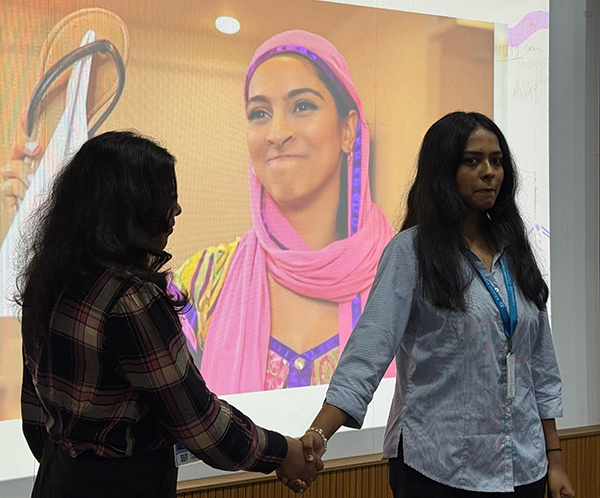 The next challenge was to solve a puzzle displayed for them on the screen. Participants were also encouraged to guess the words associated with that puzzle. This was followed by another game in which students had to extract as many smaller words as possible from a bigger word that was cued on the screen.
