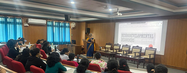 Ms. Alphonsa delivered an in-depth and engaging lecture, covering the various types of neurodevelopmental disorders, their risk and causal factors, and approaches for assessment and treatment. She placed particular emphasis on the importance of considering the socio-cultural background of clients, especially in complex cases involving comorbidities, to ensure diagnostic accuracy.