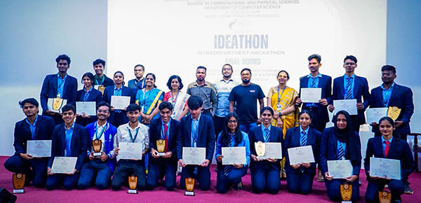 The School of Computational and Physical Sciences, Department of Computer Science, Kristu Jayanti (Deemed to be University), in collaboration with the Institution’s Innovation Council, organized the Ideathon – Intradepartment Hackathon final round idea presentation on 17th September 2025. A total of 20 teams showcased their innovative solutions, selecting problem statements from the Smart India Hackathon (SIH) portal under various ministries. Each team brought forth a unique approach to address the given challenges, with participation criteria requiring six members per team, including at least one female student. During the event, team leaders along with their members presented viable and impactful ideas to the jury. The evaluation was carried out by an esteemed panel comprising alumni industry experts: Mr. Ashray, CTO, Metanoia Solutions; Mr. Solomon S., Business Analyst, Amazon; and Mr. Mohammed Samsuddin J., Senior Software Engineer, Kaplan India Pvt. Ltd. After all the presentations, the jury announced the results based on the performance, creativity, and feasibility of the solutions proposed by each team.