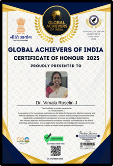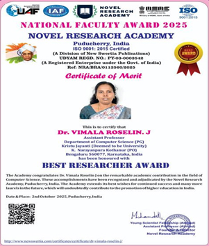 Faculty members of the Department of Computer Science (PG) have received various prestigious awards in recognition of their excellence in teaching, research, and academic leadership. These honors were conferred by reputed academic bodies, professional societies, and industry organizations. The awards acknowledge outstanding contributions to innovation, curriculum development, and student mentorship. Such recognitions reflect the faculty’s dedication to academic excellence and professional integrity. These achievements significantly enhance the reputation and academic standing of the department.