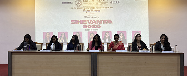 The SynHera Women’s Society of Kristu Jayanti Institute of Technology (KJIT) organized “Shevanta 2026” on 7 March 2026 at the M4 Auditorium to celebrate International Women’s Day. The event aimed to recognize the achievements of women and inspire students through discussions on career growth and empowerment.