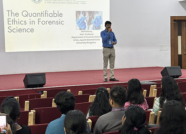 The programme was conducted by Mr. Akhil Benny, Assistant Professor, Department of Forensic Science, Kristu Jayanti Deemed to be University, who served as the resource person for the session. The orientation was attended by 253 students of IInd year B.Sc. Forensic Science, B.Sc. FSBTBC, and B.Sc. FSCRBC programmes.