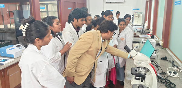The hands-on practical training session was conducted from 2:00 p.m. to 5:00 p.m., where students were divided into two batches of 18 students each to ensure effective learning and individual attention. During this session, students received one-to-one practical exposure to sample handling, spectrum acquisition, and basic interpretation using the ATR-FTIR instrument.