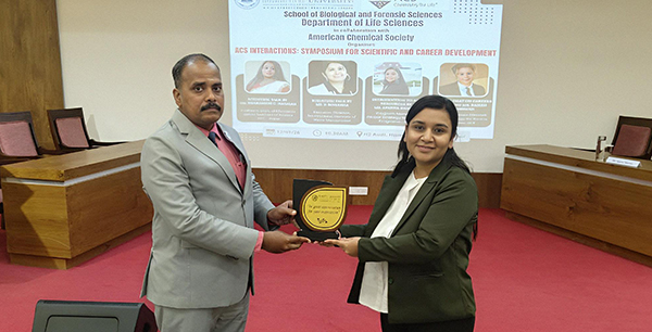 The conclave featured a series of expert talks. Dr. Tharamani, Professor, Ropar, spoke about biomolecule detection and biosensors ‘Chemistry in environmental sustainability’ was introduced by Ms. P Bineesha, Executive Director, International Institute for Waste Management. Ms. Aparna Sharma, Program Manager, Global Strategy for Society programs, American Chemical Society concluded the talk by discussing about ‘Unlocking opportunities: ACS resources for career advancement in research and academia’. The symposium has witnessed very active participation of postgraduate students. This is evident from the interesting discussion sessions and questions asked during the symposium, which reflected their deep enthusiasm for both scientific innovation as well as developments related to their future careers.