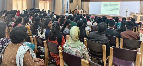 The session was led by Dr. Shinomol George, Internship Coordinator, who provided detailed guidance on internship objectives and expectations. She highlighted the significance of internships in enhancing skill development, gaining industry exposure, and fostering research orientation among students.