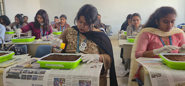The programme commenced with a formal welcome and introduction of the resource person. Ms. Latha and Ms. Rachel delivered an insightful and practical session explaining the concept of microgreens, their nutritional benefits, short cultivation cycle, and minimal investment requirements. She elaborated on the step-by-step cultivation process including seed selection, tray preparation, watering techniques, harvesting methods, and maintaining hygiene standards.