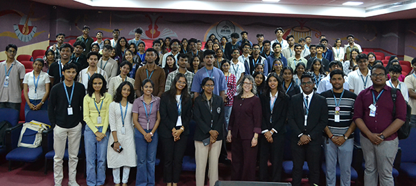 International Lecture Series titled “The Silicon Valley Mindset: Strategic Intuition in the Age of AI” was conducted on 30 January for final-year students, featuring Dr. Nydia McGregor, Associate Dean, Leavey School of Business, Santa Clara University. She highlighted the importance of adaptability, continuous innovation, and strategic use of resources, explaining how organizations redesign existing resources to create greater value and competitive advantage.