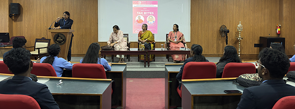 The Department of Professional Accounting and Finance organized an insightful Income Tax session titled "TAX BYTES" conducted by Ms. Srividya, Income Tax Officer, and Ms. Jaishree, Income Tax Inspector. The resource persons provided practical insights into tax procedures, compliance requirements, search and seizure , functioning of the Income Tax Department and careers in Income Tax.