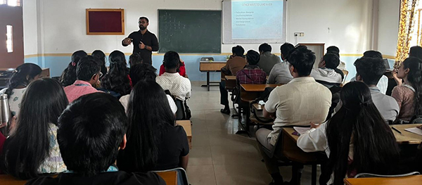 The Department of Computer Science organized an Alumni Lecture Series on the topic “Cracking Your First Job: What I Wish I Knew in College” on 2nd August 2025. The session was led by Mr. Ravi Kiran, an alumnus and currently an Application Support Engineer at Syncron Software India Pvt. Ltd, Bengaluru.