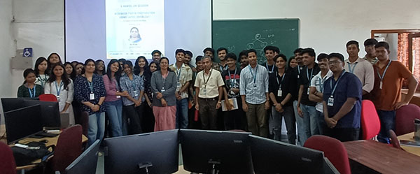 An academic session on “Research Paper Preparation Using LaTeX (Overleaf)” was conducted by Ms. Resmi T J was conducted for VI semester B.Sc. Data Science students with the objective of familiarizing them with professional research documentation practices. The session emphasized the importance of structured writing, technical formatting, and standard publication conventions essential for academic and research-oriented careers. The session began with an introduction to LaTeX as a powerful document preparation system widely used for writing research papers, theses, and technical reports. Students were introduced to Overleaf. The session also highlighted best practices in research paper preparation, including clarity of presentation, consistency in formatting, proper citation techniques, and plagiarism avoidance. Students were shown how LaTeX ensures professional-quality output and reduces formatting errors commonly encountered in traditional word processors. Overall, the session successfully bridged the gap between theoretical knowledge and practical research writing skills. It equipped students with a valuable technical competency that will support for paper publications.