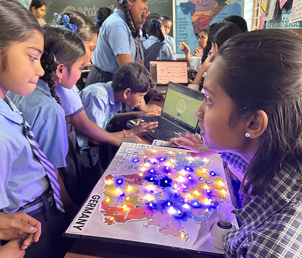 The university students transported their working models and charts to the school premises and set up an exhibition space. They demonstrated various projects related to physics, electronics, mathematics, statistics and computer science principles in a simple and interactive manner. The demonstrations included experiments explaining the physical science concepts. Each project was explained in an easy-to-understand way so that the school children could grasp the concepts clearly.