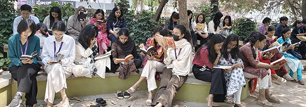 The Department of English organised “Turn a Leaf: Celebrating Women Writers” at Readers’ Corner as part of the observance of International Women’s Day, on 10th March 2026. The event invited students to bring and share a piece of writing by a woman author that had inspired or influenced them. Participants selected excerpts from a diverse range of works by women writers and read them aloud, followed by brief reflections and discussions on the ideas, emotions, and perspectives these texts evoked. Through this collective reading and discussion, the event encouraged students to engage closely with literature while recognising the significant contributions of women writers across cultures and generations.