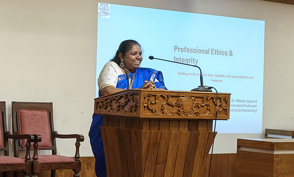 The Department of English, School of Humanities and Social Sciences, Kristu Jayanti (Deemed to be University), Bengaluru, conducted a Student Enrichment Programme on “Professional Ethics and Academic Integrity” for VI BA English Literature and VI JOEN students on 7 January 2026 at the H2 Auditorium. The session was facilitated by Dr. Winnie Joyce A, Associate Professor, Department of Social Sciences, who delivered an insightful lecture emphasizing the significance of ethics and integrity in shaping academic and professional excellence. The programme highlighted core ethical values such as truthfulness, accountability, transparency, fairness, and respect for intellectual property. Through engaging discussions and real-life ethical dilemmas, the resource person encouraged students to critically reflect on decision-making in complex professional contexts. Key issues including plagiarism, conflicts of interest, discrimination, and professional misconduct were addressed, enabling students to understand the long-term impact of ethical choices on individual credibility and organizational culture. The session also underscored the importance of trust as professional currency and emphasized the need for sustainable, value-driven success. Students actively participated in the interaction, making the programme a meaningful and enriching academic experience that reinforced ethical responsibility and integrity as fundamental principles of their academic journey and future careers.