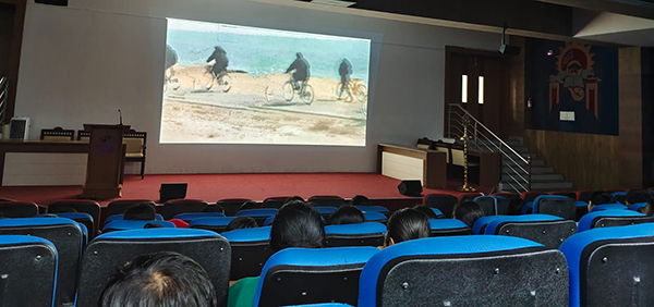 The Department of English, Kristu Jayanti Deemed to be University, Bengaluru, launched a new initiative for the film enthusiasts of the department, Silver Screen Forum. The inaugural session was conducted on 16th July 2025, with Dr Gopukumar A.V., Dean, Faculty of Humanities, Kristu Jayanti Deemed to be University, delivering the inaugural address. In his address, Dr Gopukumar highlighted the growing significance of film studies as a critical academic discipline that offers profound insights into human experiences, societal dynamics, and cultural expressions. He underscored the importance of engaging with films from diverse directorial perspectives, thereby encouraging a broader and more nuanced understanding of cinematic narratives. The session featured the screening of the Bhutanese film Lunana: A Yak in the Classroom, directed by Pawo Choyning Dorji. The narrative follows a young man assigned to teach in a remote Himalayan village, where he undergoes a transformative journey of self-discovery. Central themes of the film include the importance of human connection, community, adaptability, resilience, and the transformative power of education. Following the screening, an interactive discussion was held, during which students actively engaged in critical reflection and shared their interpretations of the film’s themes and messages. The event enabled students to develop a deeper critical appreciation of cinema, enhancing their understanding of its cultural significance.