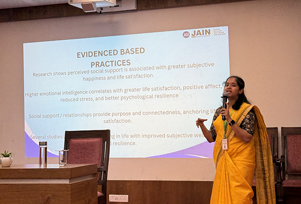 Dr. Anjana Warrer, Assistant Professor from School of Allied Health Sciences, Jain (Deemed to be University), served as the resource person. She likely shared expertise on emotional intelligence, better living strategies, and coping mechanisms through insightful discussions.