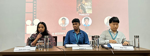 Following the screening, a panel discussion was conducted featuring three student panelists: Samyuktha Shylie, Lalminlen Singson, and Koushik D (BA PSSO VI Semester). The discussion focused on themes such as ageism in the workplace, changing family structures, mentorship across generations, and gender dynamics in leadership roles. The interactive discussion encouraged students to reflect on sociological theories and real-world applications.