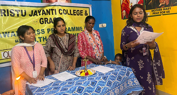 An awareness session on Health and Hygiene was conducted at GRACE Camilla Centre, Old Bagalur Layout on 12 March 2026 by Student Coordinators Amrik Chesa Ch Marak and Priyankaa, First Year MSW students. The program aimed to create awareness among women on maintaining proper health and hygiene in daily life. A total of 15 participants attended the session.