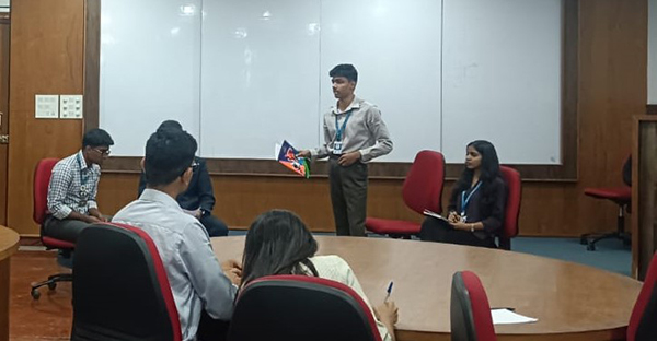 Debating Society organised an Intra-University Mock MUN on the agenda of “Protecting Human Rights in the Digital Age – Combating Online Disinformation and Hate Speech” on 23rd September 2025 from 2:40 to 4:30 pm. It began with the Chairperson. Mr. Alby Mathew Kurien (23BBLW07) and Co-Chairperson, Mr. Alan Kinad (23BTGE10) explaining all the rules and regulations of the conference and guided the delegates on how a Model United Nations work. Several delegates delivered their Country’s position on the agenda, laying the grounds for further Debate. Following the GSL, a Moderated Caucus was introduced on the topic “Socio-economic Impact of the issue of Disinformation and Hate Speech.” Several delegates actively participated in the following discussions, offering diverse perspectives and engaging in constructive debate. The session was concluded with both the Chairperson and the Co-Chairperson formally closing the proceedings. The training session served as a valuable learning experience for the participants familiarizing them with the structure of MUNs while encouraging analytical thinking, public speaking and diplomatic exchange. Ms. Bhadra Viswanath (23PYEN79) as Head of Press and Mr. Hanan Mathew Suresh (25MCFA13) as Delegate Affairs trained the delegates on International Press Corps.