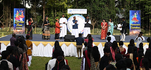 The Kristu Jayanti Dance Academy organized the Navaratri Raas: Dandiya Eve on October 10, 2024, an event that brought together the vibrant spirit of Navaratri with the energetic traditional dance form of Dandiya. The event witnessed an overwhelming response with 1,700 students registering to participate. The evening was a lively celebration of culture, dance, and unity as students, dressed in colourful traditional attire, came together to perform the Dandiya Raas in the college's quadrangle. The event was inaugurated by Rev Fr. Dr. Augustin George, who spoke about the significance of Navaratri and the role of dance in celebrating cultural heritage. The event was organized and overseen by a dedicated team of faculty members, including Dr. Nishitha, Ms. Sreedevi VK, Ms. Srilakshmi MP, and Mr. Karthik Manoharan, ensuring a smooth and enjoyable experience for all participants. With music, lights, and the rhythmic beat of Dandiya sticks, the atmosphere was charged with excitement. The event also featured live music performances that elevated the energy and enthusiasm of the students. The evening concluded with prizes awarded for the best-dressed participants and best Dandiya performers, making it a memorable celebration of tradition and togetherness.