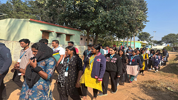 The Electoral Literacy Club of Kristu Jayanti University, in collaboration with the Center for Social Activities, organized a Voter Registration Campaign as an extension activity in Esturu village, Hoskote Taluk on 18th December, 2025. The campaign aimed at spreading awareness about electoral rights and facilitating voter registration among eligible village residents. Student volunteers, under the guidance of faculty coordinators, visited the village and interacted directly with the local community.