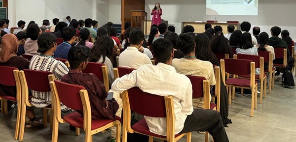 Smt. Snehal also cleared doubts about electronic voting machines, assuring their safety and transparency. A key focus of her talk was the issue of low voter turnout among Bengaluru's youth in previous elections. She passionately encouraged the students to exercise their right to vote, stressing that their active participation is necessary for a successful democracy. She addressed common misconceptions about electronic voting machines (EVMs), assuring the audience of their safety and security. She clarified the process, explaining that voters can verify their chosen candidate at the end of the voting process, ensuring transparency and trust.