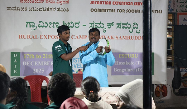 The Centre for Social Activities, Jayantian Extension Service, Kristu Jayanti College (Autonomous) has organized the five-day rural exposure camp in Esthur Village, Hoskote. The volunteers have embarked on a comprehensive mission to assess and address the healthcare needs, employment opportunities, and development need within the community. The volunteers had conducted a survey to collect the information on various issues are facing by the villagers. An awareness camp had also been conducted on healthcare and employment opportunities for young generations. The volunteers had also organized a session on agricultural best practices for the village farmers.