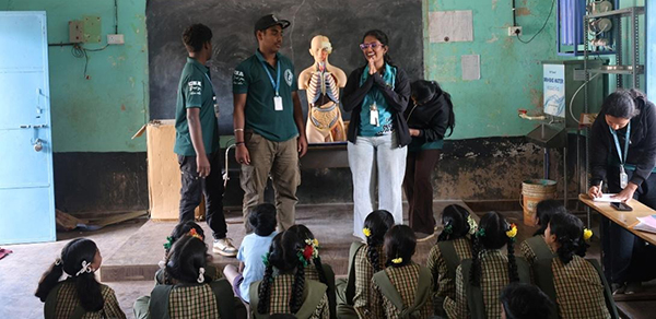 Various science models were displayed, including internal organs such as the heart, lungs, and digestive system, along with external body parts. Volunteers explained the structure and functions of each model using simple language, demonstrations, and interactive questioning. The students actively participated by observing the models, asking questions, and engaging in discussions.