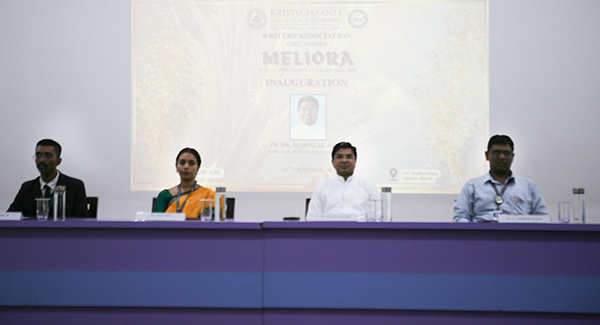 The Writers’ Association of Kristu Jayanti (Deemed to be University), Bengaluru, organised The Meliora 2025 – The Intra-University Literary Fest on October 14, 2025, with the theme “Unfolding a Better Aurora, Where Words Light the Sky.” The fest celebrated the creative and intellectual spirit of Jayantians, providing a vibrant platform for budding writers and literary enthusiasts to showcase their talents. The inaugural session began with an invocation song, followed by a welcome address by Dr. L. Santhosh Kumar, Assistant Professor of English and Faculty Coordinator of The Writers’ Association. The ceremonial lighting of the lamp and release of the newsletter were led by Fr. Dr. Maria Lal Joseph, Director of Research and Development, who also delivered the inaugural address. Dr. Briji Jose, Fest Coordinator, presented the concept note, and Mr. Vishnudev S, Student Secretary, delivered the vote of thanks. The day featured events such as Pass the Plot, Flip the Script, Rhyme Rendezvous, Once Upon a Twist, and Spoken Word Showdown, which showcased participants’ creativity and literary flair. The valedictory session, held at the A1 Conference Hall, included a welcome address by Dr. Aryamol K. B. and an inspiring valedictory address by Fr. Joshy Mathew, who praised the students for their remarkable literary contributions, including publications in blogs and online news portals. The fest concluded with a heartfelt vote of thanks by Ms. Gowrikrishna S. Kumar, Faculty Member, Department of English, who expressed gratitude to all dignitaries, participants, and organisers for making The Meliora 2025 a grand success.